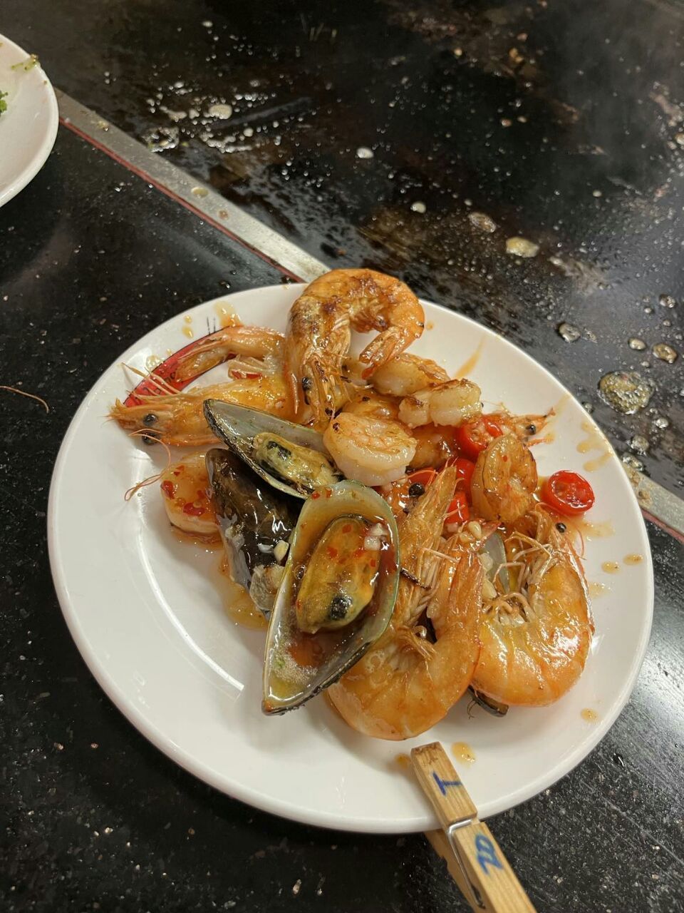 At the Mongolian buffet you can have portions of food fried that you have chosen yourself.